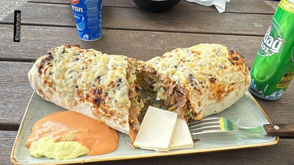 Döner Teller Spezial - mit Pommes, Käse überbacken, Salat, Sauce und Sauce Hollandaise