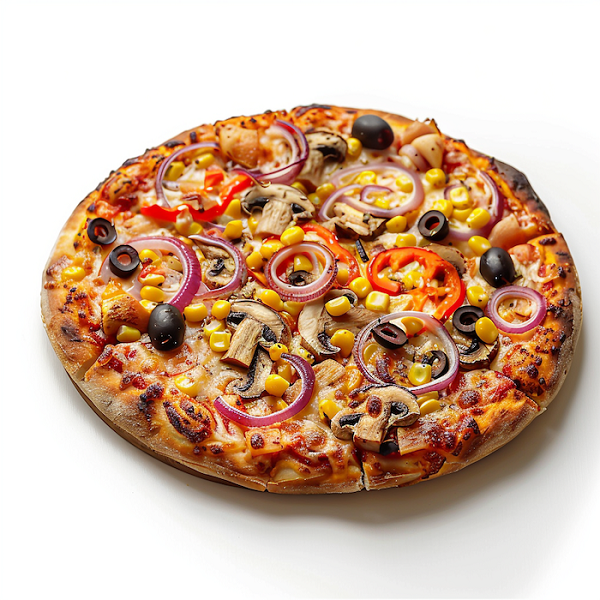 Pizza Veggi - mit roten Zwiebeln, frischer Paprika, Champignons, Mais und Oliven